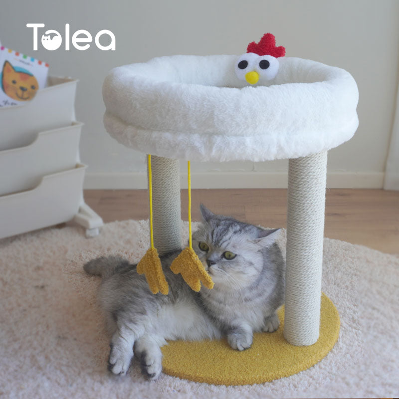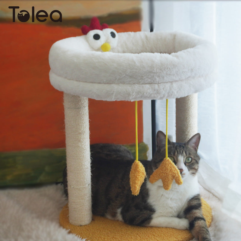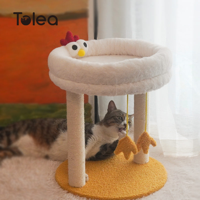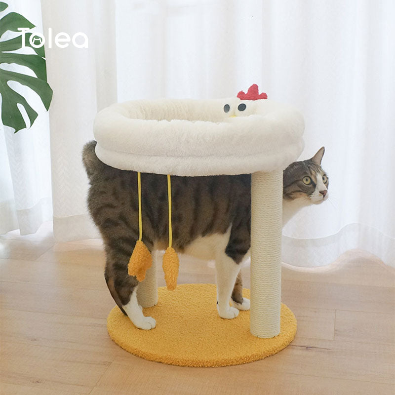 Tolea Plush Two-Tier Cat Tree – Cute Chick Design