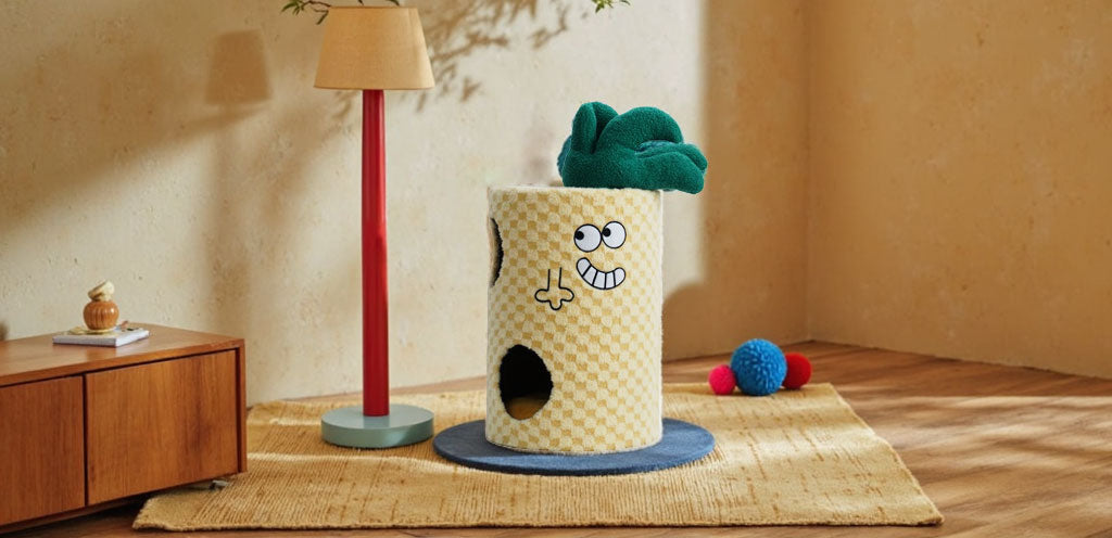 Cute & Quirky Cat House | Two-Level Pineapple Cat Bed with Scratching Mat